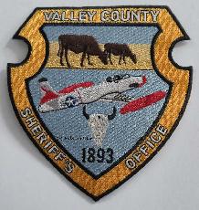 Valley Co. Sheriffs Office - new condition - The new shoulder patch was introduced on February 6, 2023, to mark the 130th anniversary of the Valley County Sheriff’s Office. The patch proudly displays symbols of cattle ranching on open prairie, golden grain fields and farming, two former Air Force bases represented by the T-33 Jet from St. Marie, vast blue skies of Big Sky Country, the legacy of roaming buffalo, its arrowhead shape honoring Native American heritage, and the year 1893 marking the office’s founding.